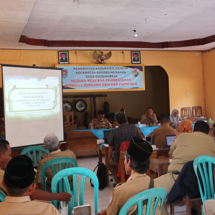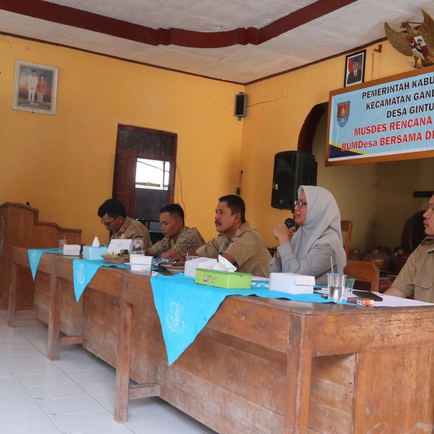 Musyawarah dipimpin oleh BPD Desa Gintungreja beserta tim Sosialisasi dari Kecamatan Gandrungmangu serta di hadiri oleh perwakilan masyarakat Desa Gintungreja. Peserta yang hadir merupakan anggota BPD, Remaja, Tokoh Masyarakat dan TP PKK Desa Gintungreja serta perwakilan dari BUMDes Desa Gintungreja.