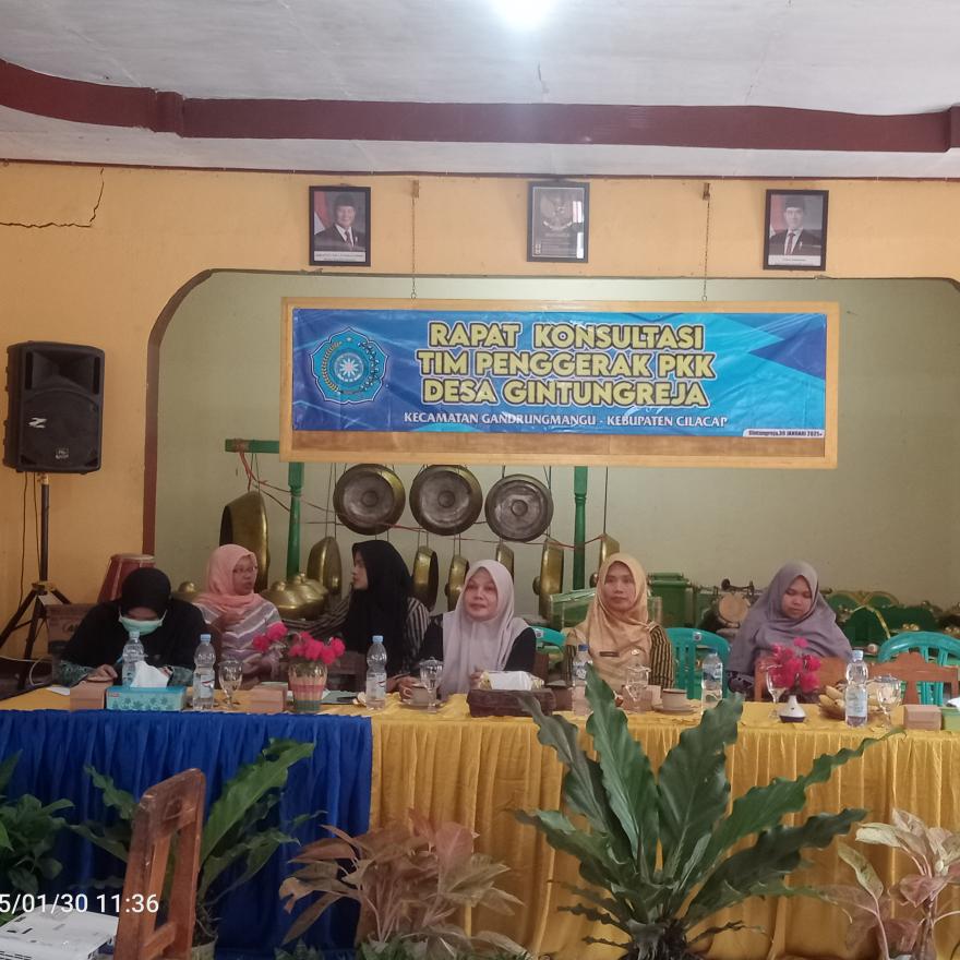 Cilacap, 20 Januari 2025 – Tim Penggerak Pemberdayaan dan Kesejahteraan Keluarga (TP-PKK) Desa Gintungreja, Kecamatan Gandrungmangu, Kabupaten Cilacap, menggelar rapat konsultasi dan evaluasi pelaksanaan 10 Program Pokok PKK. Acara yang berlangsung di Aula Desa Gintungreja ini dihadiri oleh Kepala Desa Gintungreja, Sekretaris Desa, Tim TP-PKK Kecamatan Gandrungmangu, serta seluruh kader PKK Desa Bulaksari.