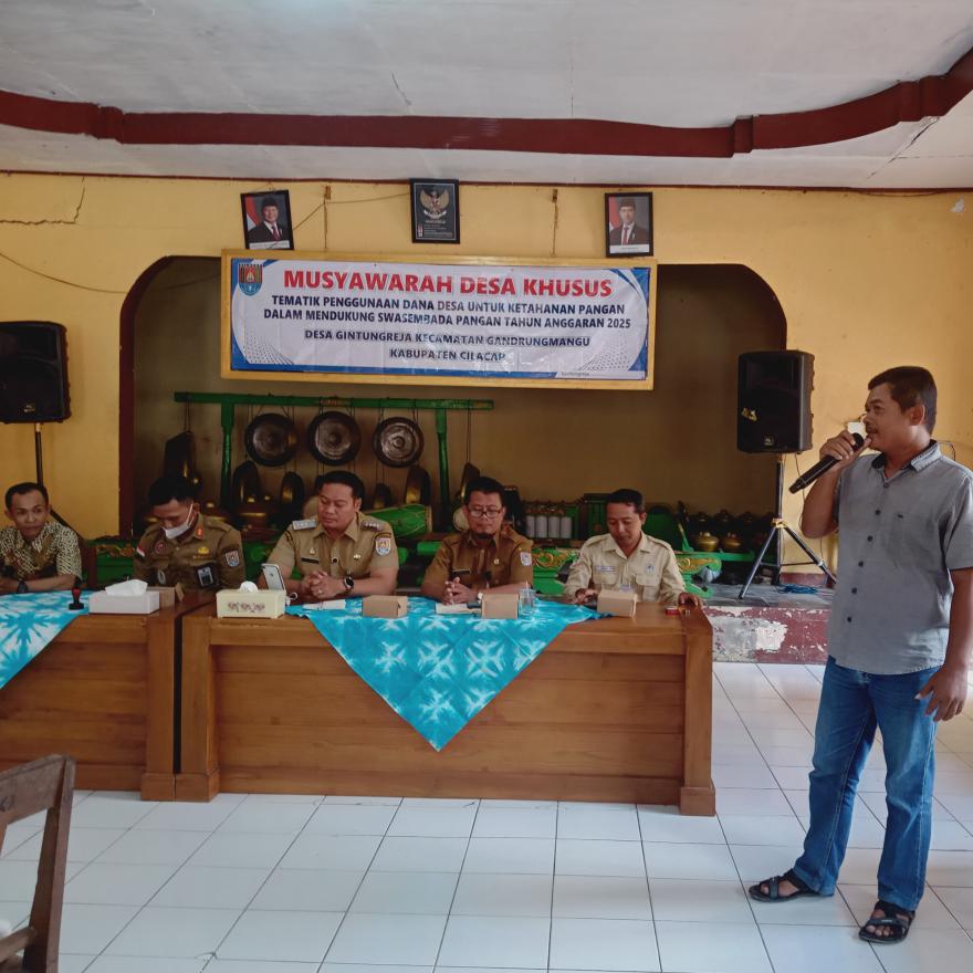 Gintungreja – Musyawarah Desa (Musdes) Ketahanan Pangan yang diselenggarakan bersama Badan Usaha Milik Desa (BUMDes) Maju Lancar berlangsung sukses pada 24 September 2025. Acara ini dihadiri oleh berbagai pihak, termasuk perwakilan dari Forkopincam Gandrungmangu, Kepala Desa Gintungreja, anggota Badan Permusyawaratan Desa (BPD), serta Ketua RW dan RT setempat.